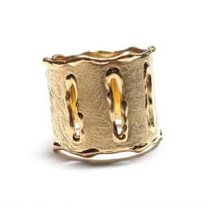 Szeroka obrączka, wykonana ze srebra. Pozłacana 24K złotem.