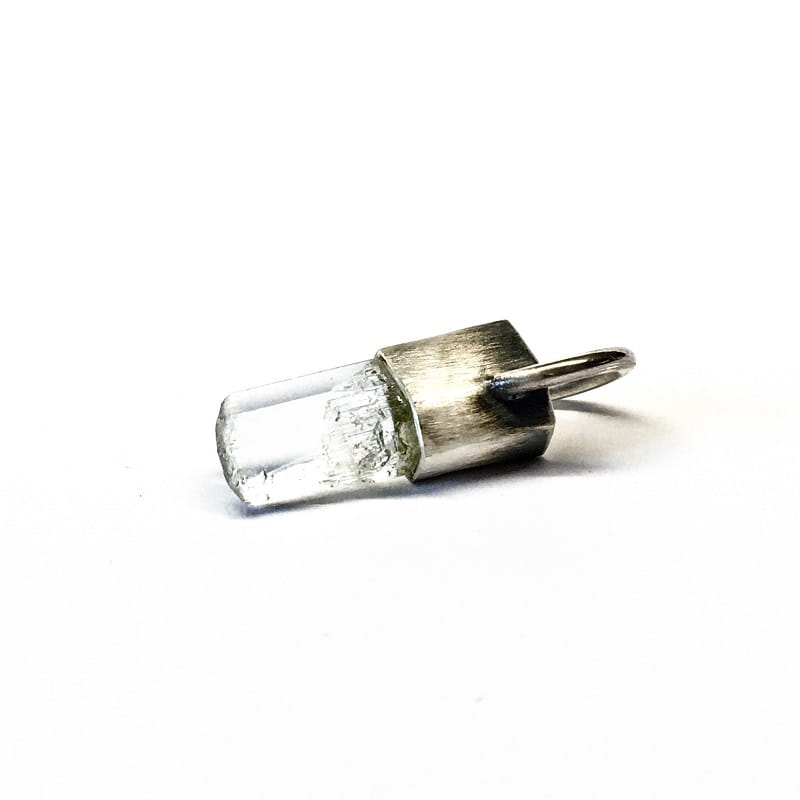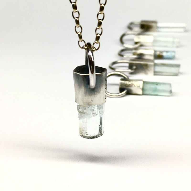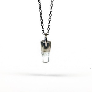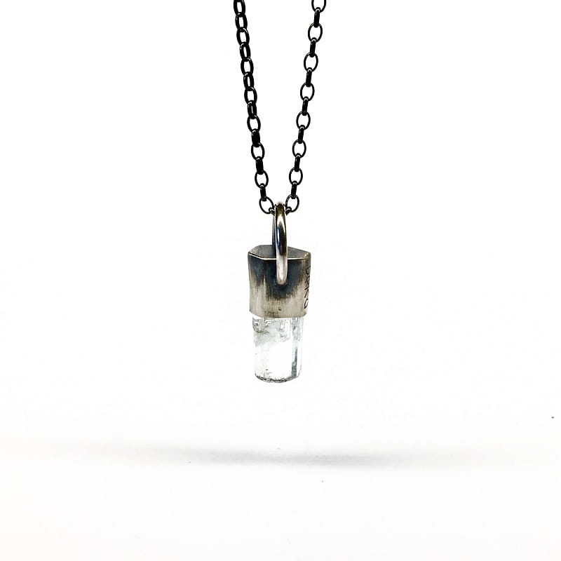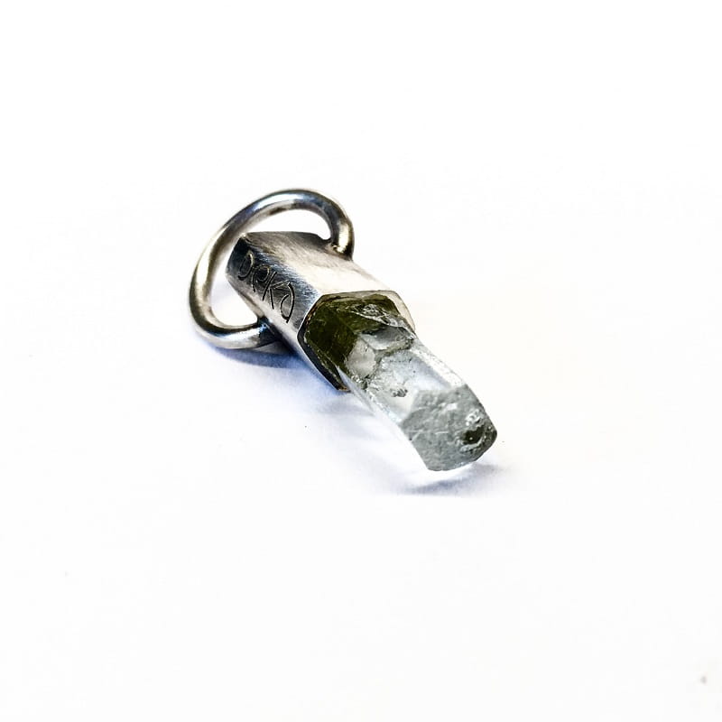 Zawieszka wykonana ręcznie z oksydowanego srebra pr 0,925 z nieoszlifowanym akwamarynem. Wymiary wisiorka; długość 27mm, szerokość 9mm. Waga 2,85 g.
